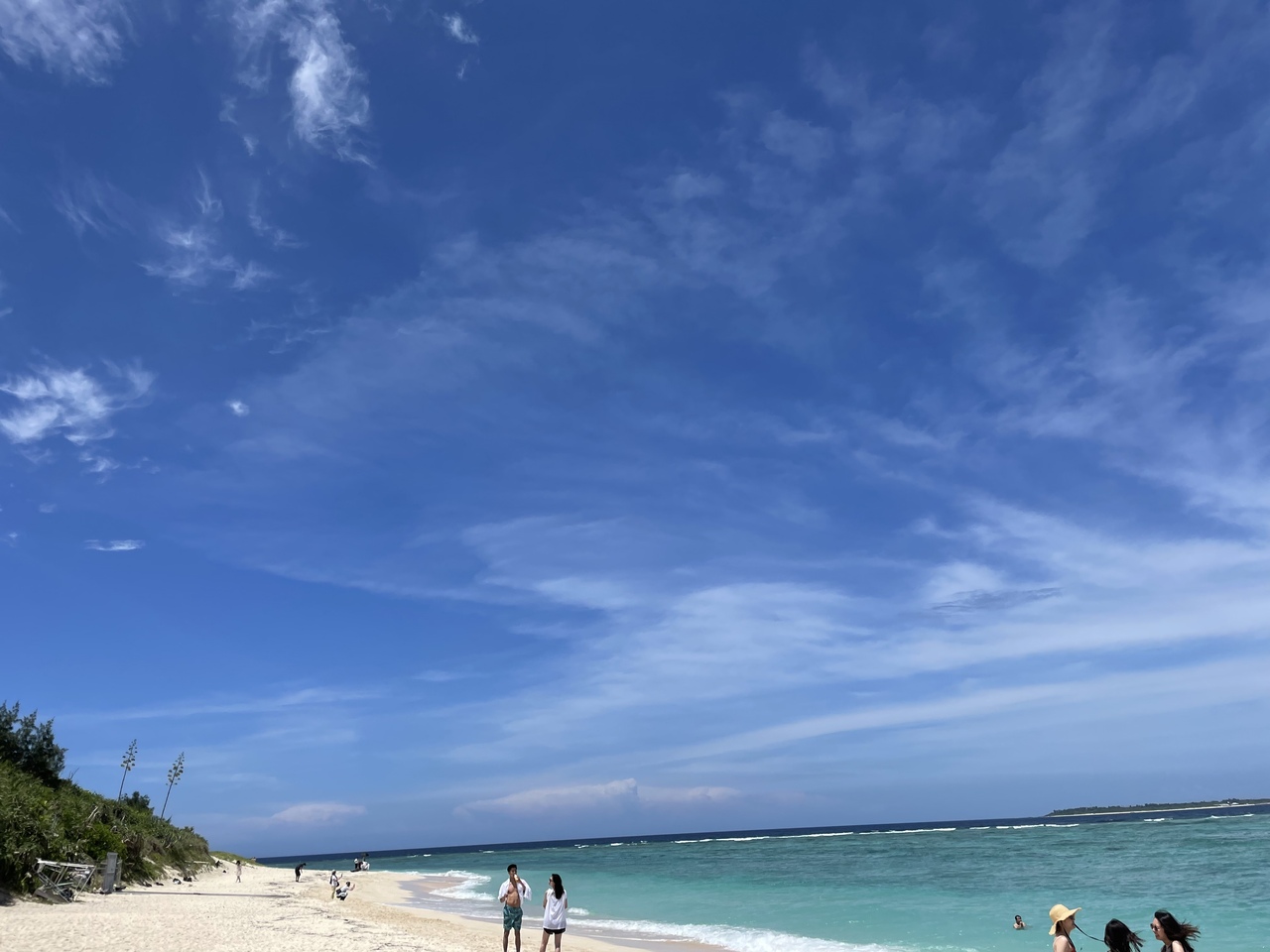 砂浜は珊瑚で覆われています。水中にも珊瑚が多い為、マリンシューズを履いた方がいいかも。近くにファミリーマートもあるので必要なものは揃います。
