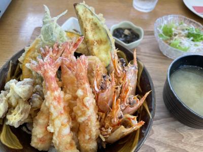 店内は意外と狭く、テーブル席が5卓くらいとカウンターが4席くらいしかないため、時間をずらして行った方がいいかもしれません。コースは量が多いため、海老目当ての方は一尾から頼める単品を頼んだ方がいいかも。天ぷら、焼き、刺身から好みの調理法が選べます。)コースにはそれぞれがつき、小鉢もいくつか付きます)自分はそれほど海老好きではないため、天丼にしましたが、野菜の天ぷらもあり、満腹過ぎて大変でした。主人はコースで美味しいと言ってました。- 旅行時期