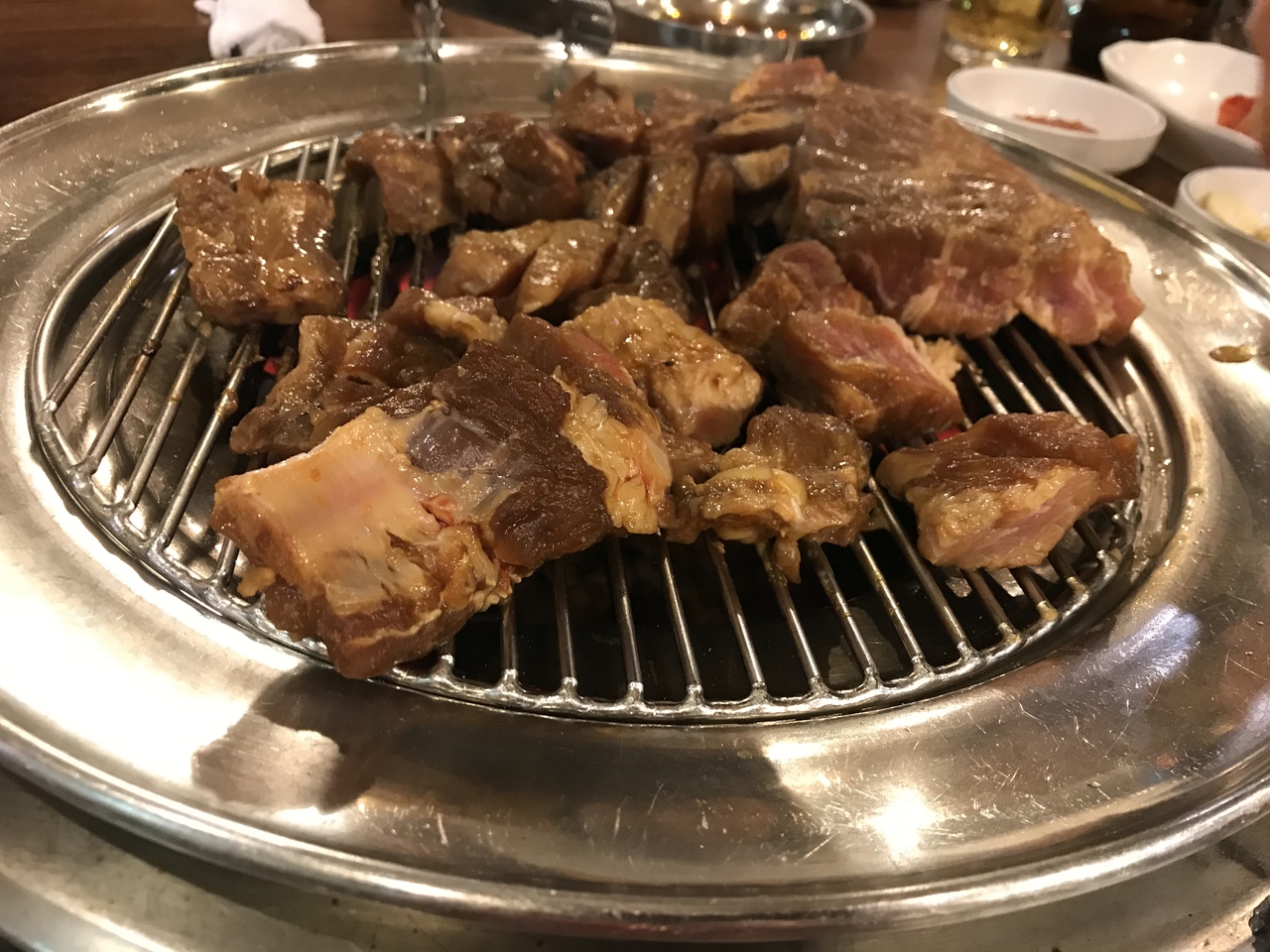 地元の方が多いデジカルビが有名なお店です。パンチャンにカンジャンケジャンが出てきますよ。パンチャンの種類が多くて嬉しい。今回久しぶりに行ったのですが、以前はオンドルの床に座るスタイルから椅子に変わってました。少し価格は上がってましたが、やはりコスパいいですー。デジカルビ以外にもたくさんメニューありで、東大門近辺に宿泊されてるならばおすすめです