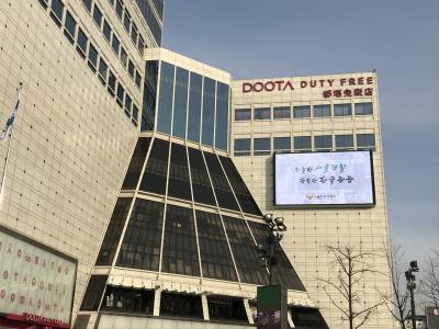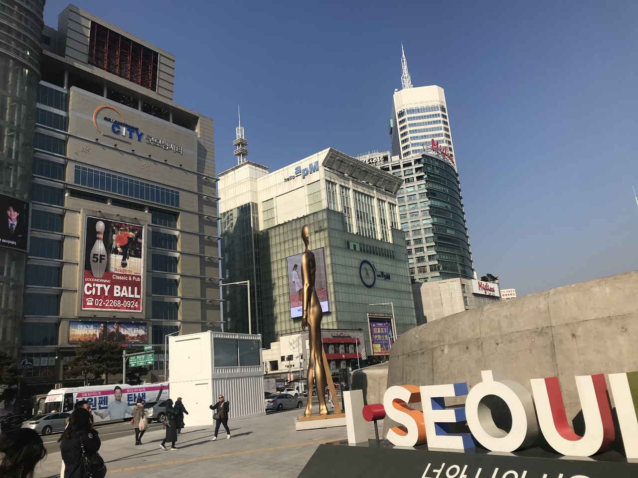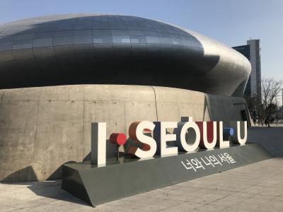 東大門歴史文化公園駅を出ると大きなオブジェと建物があります。ミュージアムや文化体験できるホールがあったり、屋外ではたまに演奏などもやっていたり、東大門ランドマーク的な建物です。夜にはライトアップされ、ほかのビルの煌びやかな雰囲気と合います。駅直結なのもいいですね。