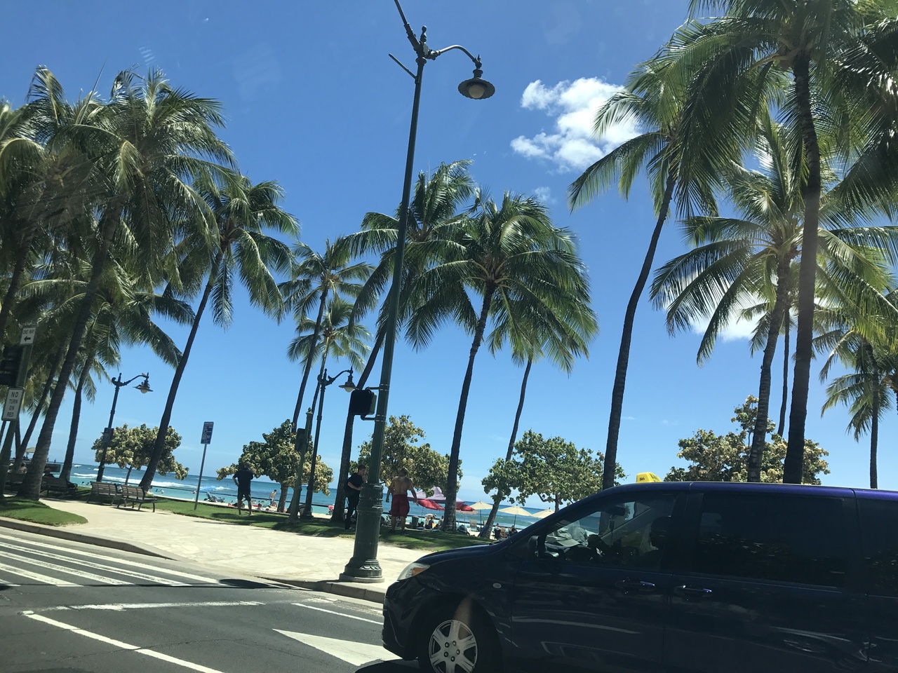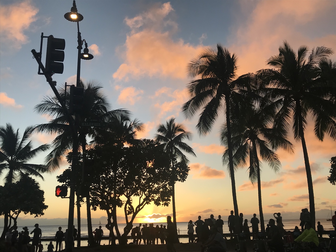 ワイキキ ビーチと言われるところに位置しますが、少しだけダイアモンドヘッド側。波も穏やかです。夕方には無料のフラショーがあるのでも有名。毎回この前のホテルに宿泊します。少しメインから離れますが、その分ゆったりできるかも。ここからみるサンセットはめちゃくちゃ美しいですよー。