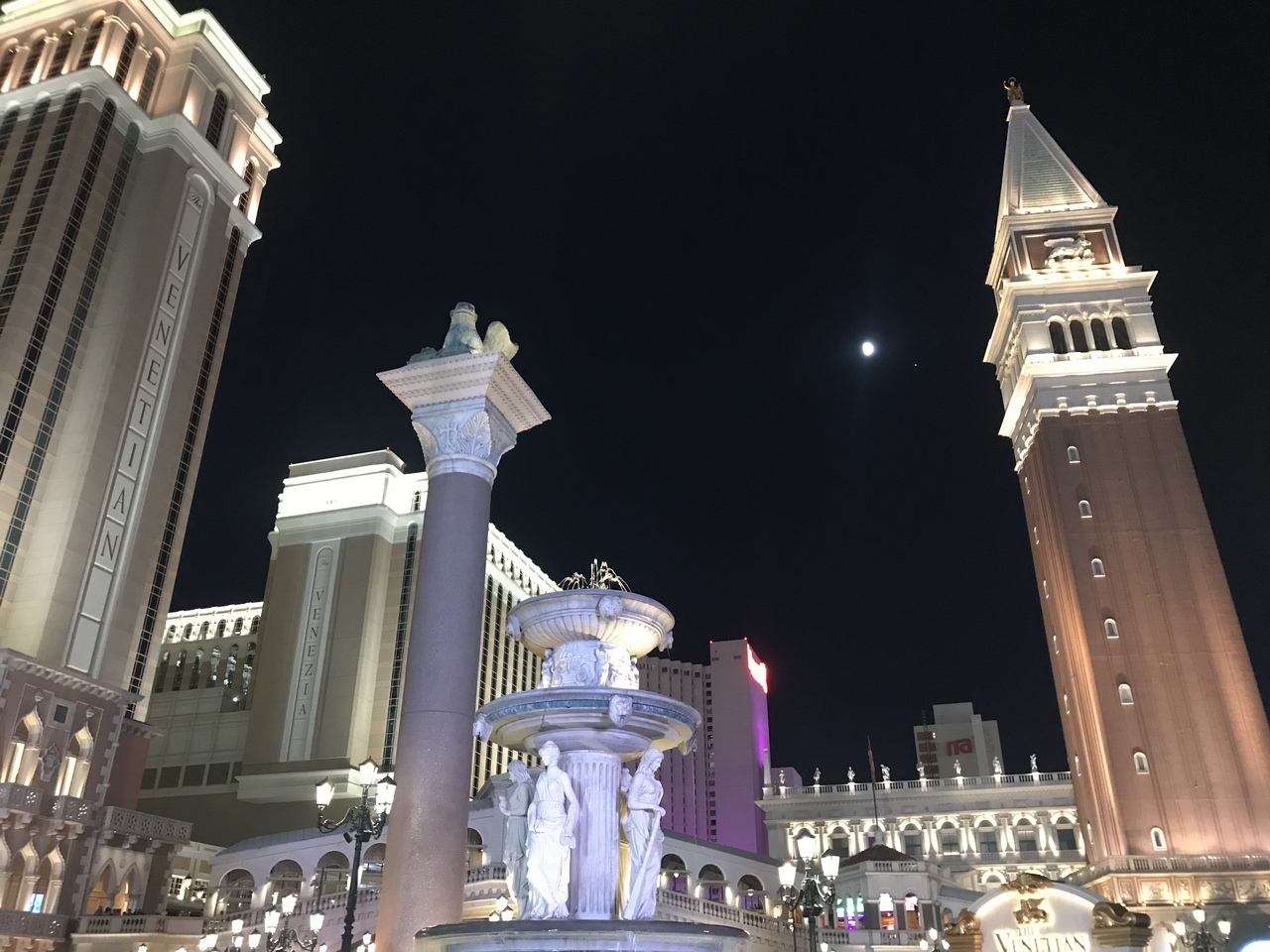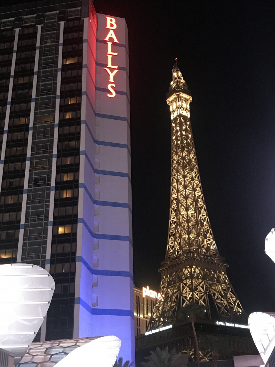 ラスベガスの風景で今では外せない感じです。展望台になっていて、正面にはベラージオがあります。断然夜景がおすすめ!時間をうまく合わせると、夜景プラスベラージオの噴水ショーがみれます。時間によっては、トリコロールカラーに変わります。