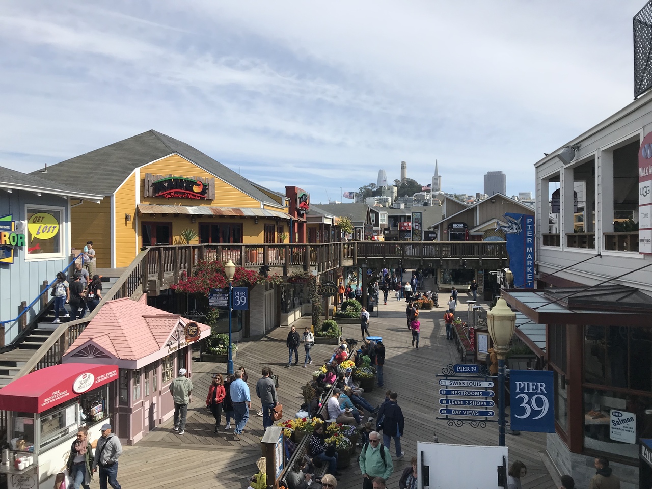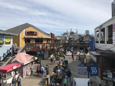 ここ自体が観光名所になっています。夕方な看板の前はいつも観光客でいっぱい。シーフードが食べられます。レストランもありますし、屋台風にお店で買ってその場で食べるのも。外で食べる場合、ナプキンはありますが、ウエットティッシュを持参するといいですよ。クラムチャウダーと茹でたダンジネスクラブは毎回食べちゃいます。おみあはたくさん並んでいますが、値段もほぼ一緒。