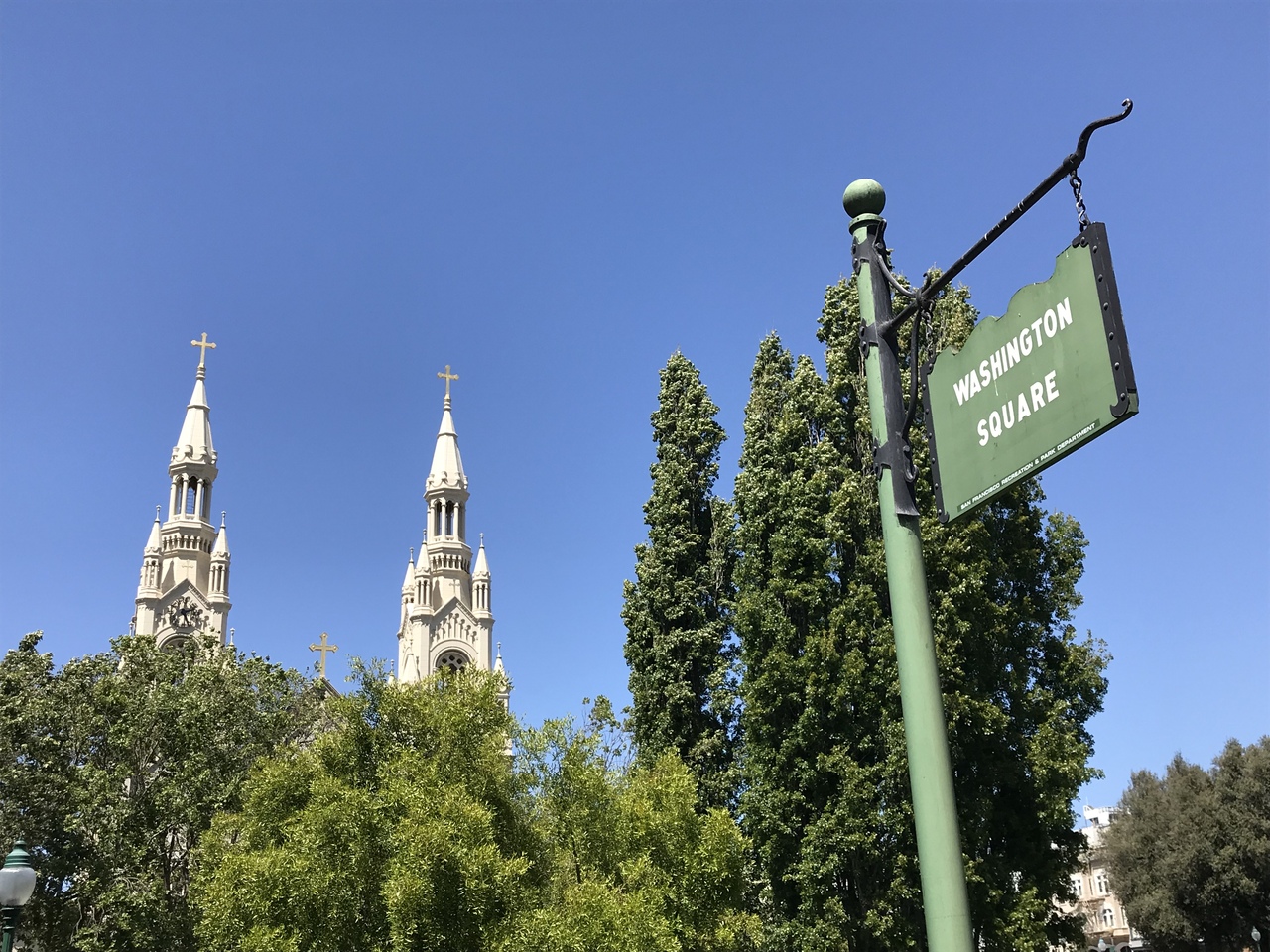リトルイタリーと呼ばれる地域が始まる境目にあるパークです。地元の方が犬とボール遊びをしたり、子供が走り回ったり、観光客というよりはローカルの方がゆっくり過ごしている場所ですね。セントピーター&ポール教会が綺麗に見えます。ノースビーチから徒歩で歩いてユニオンスクエアと我が家のお散歩コースにも入っている場所です。