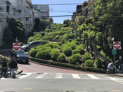 ケーブルカー乗り場もあり、いつも観光客で賑わっています。世界1曲がりくねった道。この光景をみるならば上より下から見てください。車でも通りましたが運転しにくい笑笑 上からはベイブリッジも晴れていれば綺麗に見えますし、ノースビーチ近辺も見渡せるし、素敵な場所です。