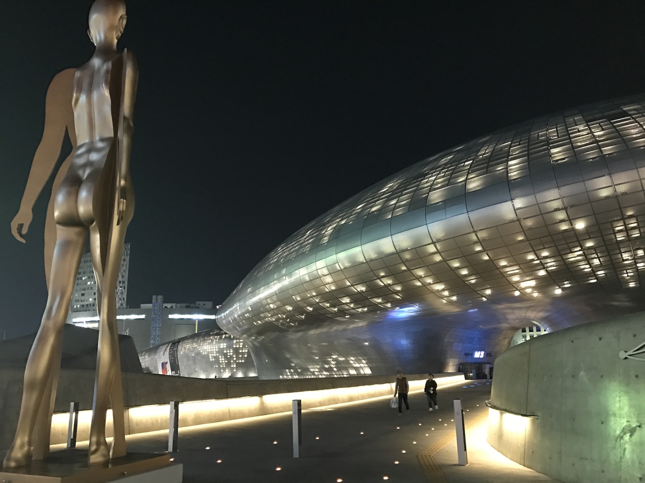 東大門歴史文化公園駅直結の不思議な形をした建物です。通称DDP。今ではLEDのバラでも有名になっています。夜はライトアップされると宇宙船のような感じ。建物の中には少しですがショップもあります。日曜日には外で演奏などやったりでみなさんのんびり寛がれてますよ。