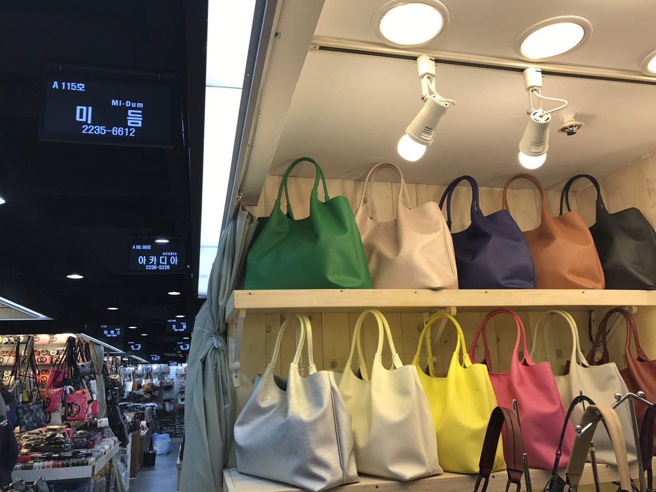 卸のビルで靴屋さんやアクセサリー、鞄のお店が所狭しと並んでいます。
