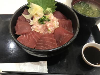 まぐろ丼を食べましたが、価格もそれほど高くなく酢飯の具合もよかったです。フードコートで食べてもここで買い物すればあがりはセルフでもらえます。- 旅行時期