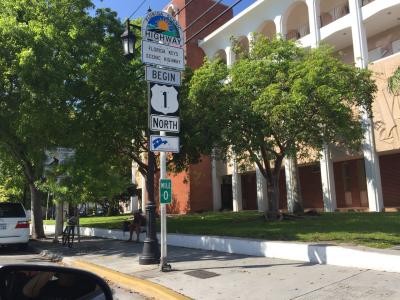 アメリカを走る1番長い国道1号線US-1の始点と終点が示してある標識です。