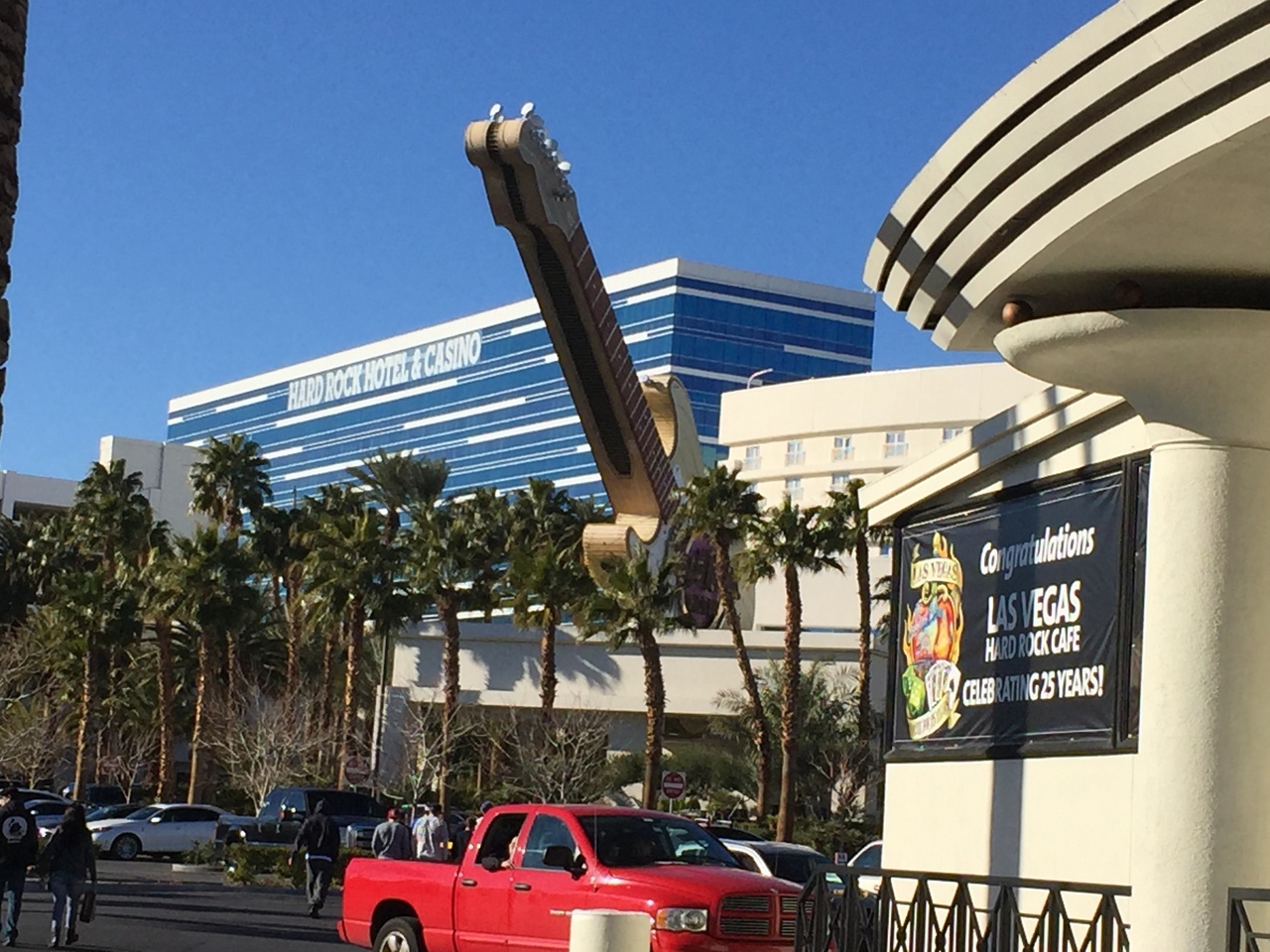 場所がストリップから離れていて少し不便ですが。ロック好きにはわくわくするホテルです。併設でHRCあり。