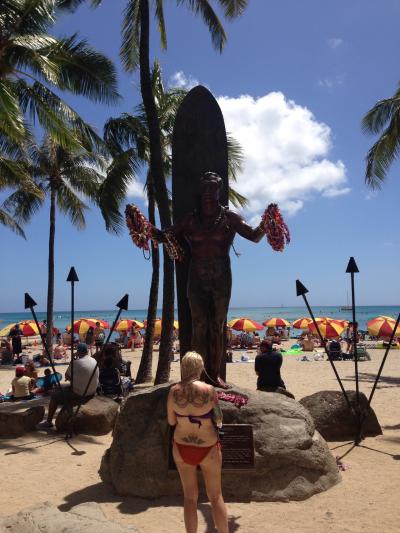 カラカウア通りのビーチを歩いていると常に写真撮影の人集りがあります。