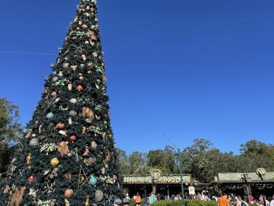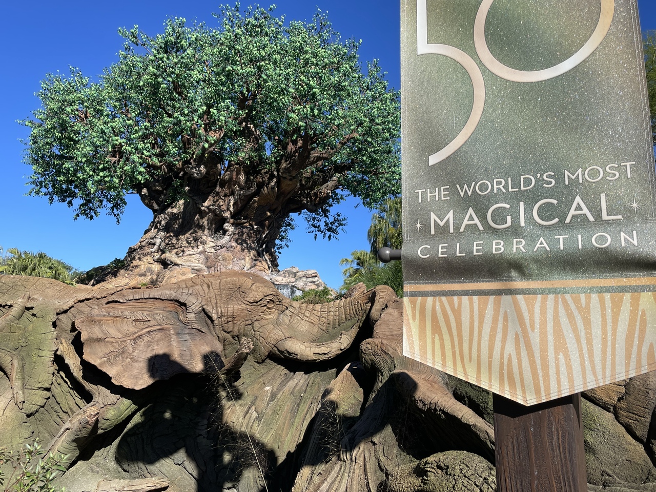 パークゲートをくぐり、少し開けたところからだんだん見えてきます。アニマルキングダムのシンボルでグッズもこれが描いてあるものが多いです。入り口近くで見るのもいいですが、アジアエリアの方からみると動物のレリーフが綺麗にみえます。