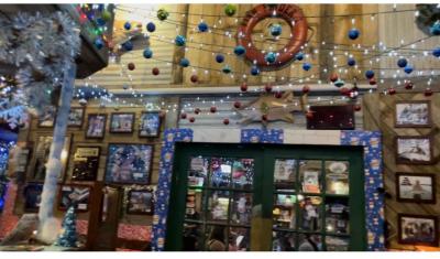 年始に行ったため、クリスマスの装飾で入り口はイルミで飾られていました。