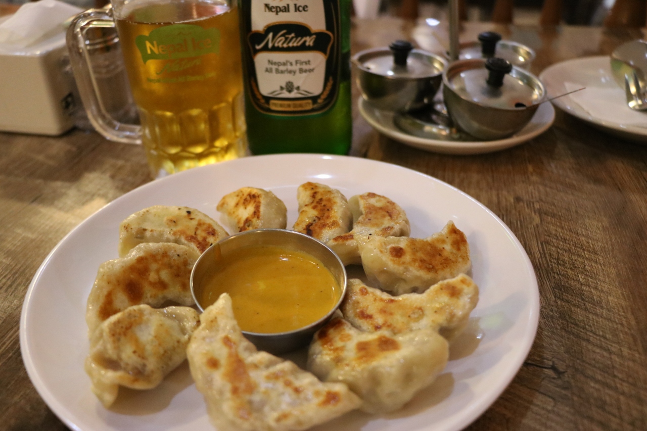 焼きモモ、ビール(おススメの Nepal IceのPremium Quality)、チップ込みで約650円