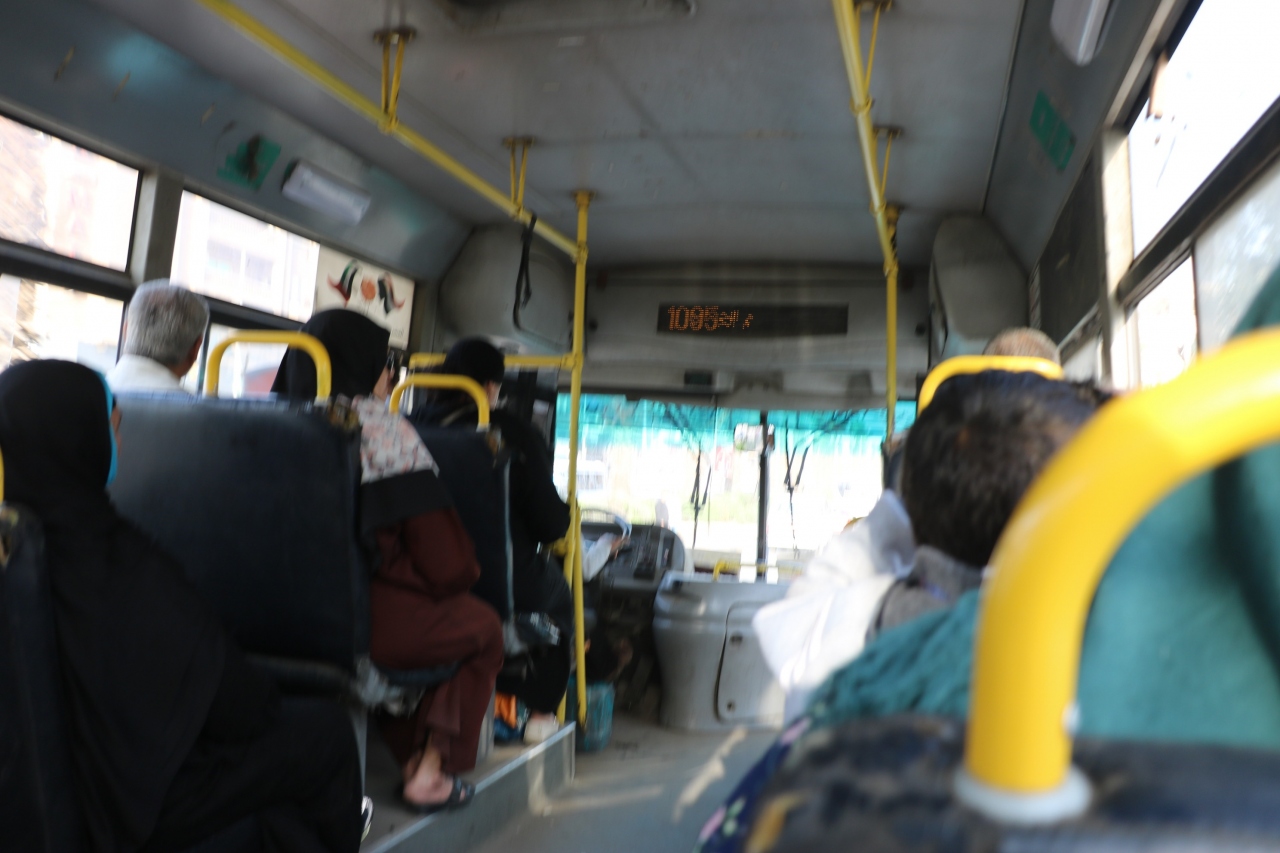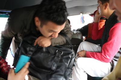 バンの中は向かい合って2列に座り、知らない人同士が膝をくっつけあう狭さで、ぎゅうぎゅうでした。