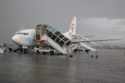 ボーディングブリッジが1台も無いため、タラップを降ります。