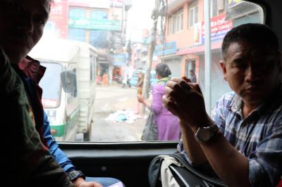 カトマンドゥの空港から直接街へ向かう公共交通機関がないため(大きい通りまで歩き、そこでバスに乗る方法はあるようですが…)、タクシー利用が一番楽かと思います。