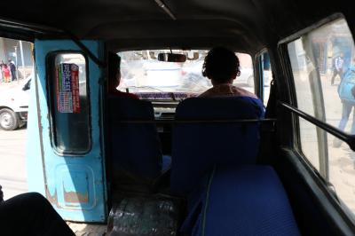 停留所がないので、降りたい所の手前で、運転席の後ろをドンドンと叩いて合図するようです。