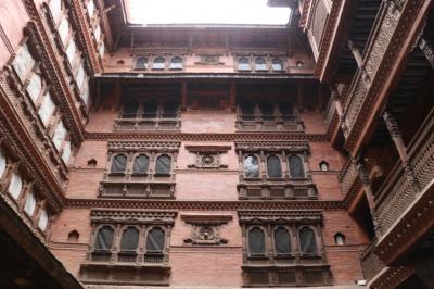 庭に昔ながらのドゥンゲダラと呼ばれる石で作られた水汲み場があったり、窓枠にネワール建築の精巧な木彫りが使われていたり、ネパールの古き良き時代を感じられる建築です。