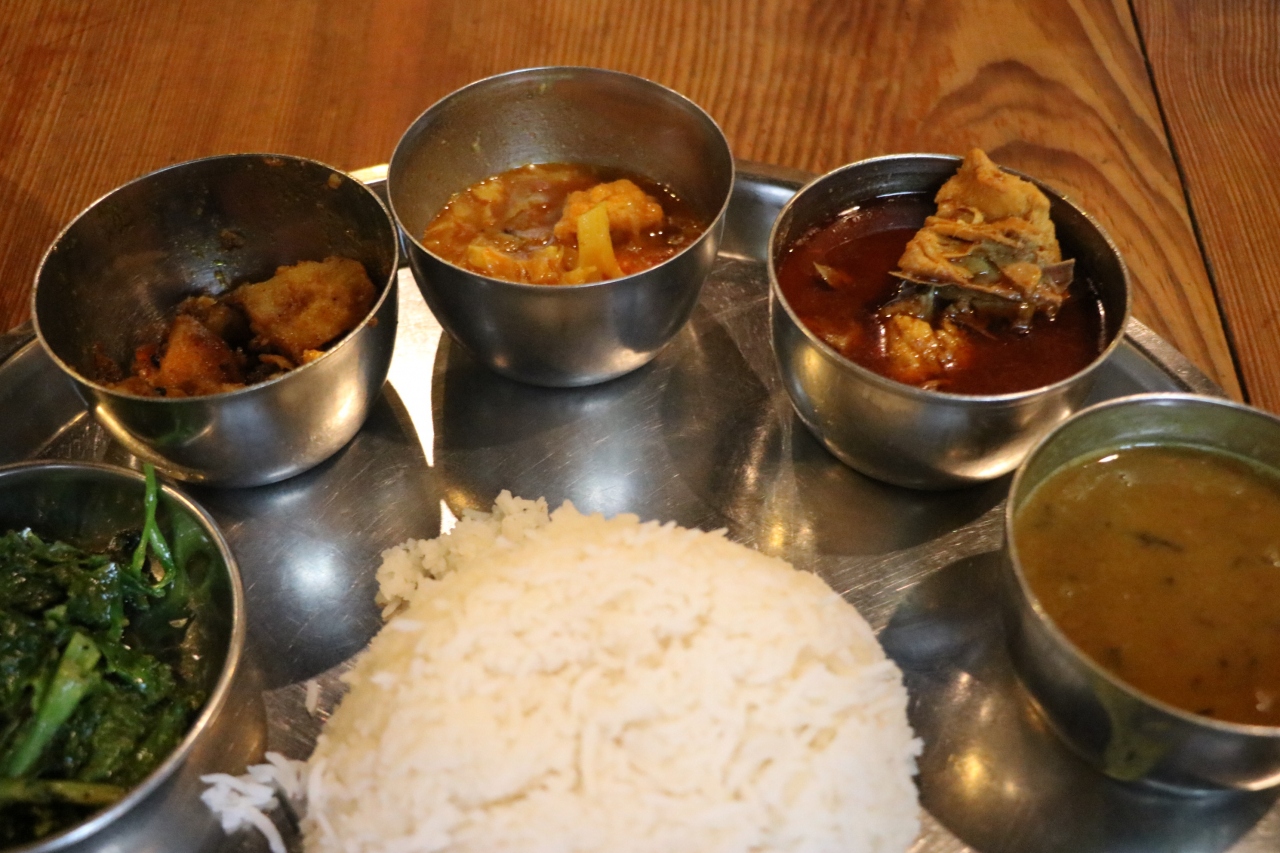 人参しか色が目に入らないほど地味過ぎるし、インスタ映えとは全く無縁の一皿(苦笑)チキンカレーのダルバート:約430円
