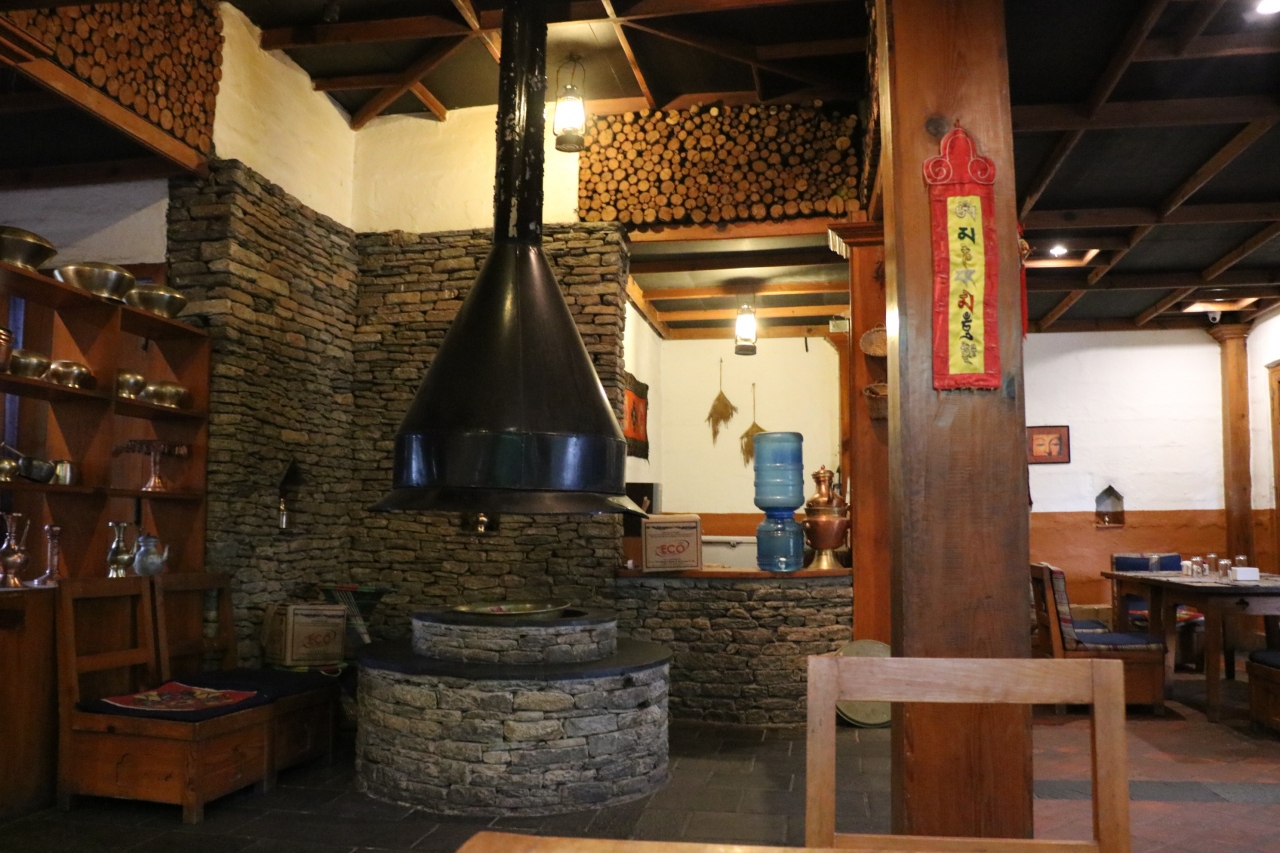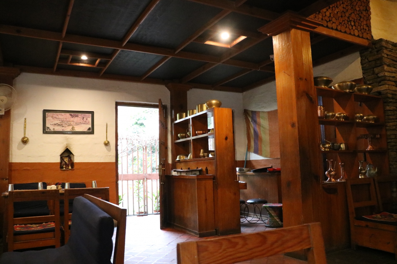 閑静な一軒家風な造りで、内装はチベットっぽく見えるけど、タカリ族のインテリアのようです。