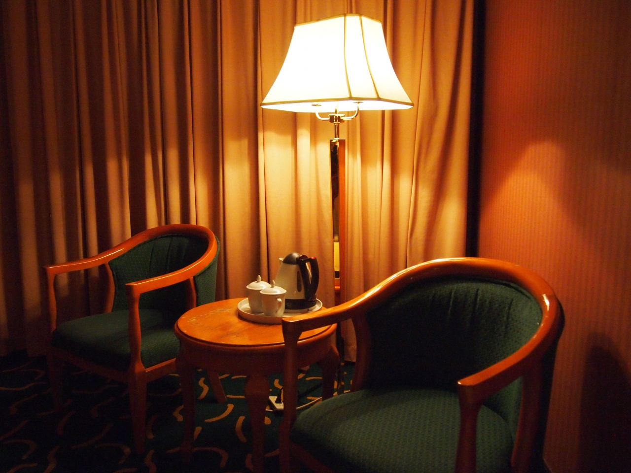 お部屋に入った時、エアコンが効いて、音楽が流れていました。