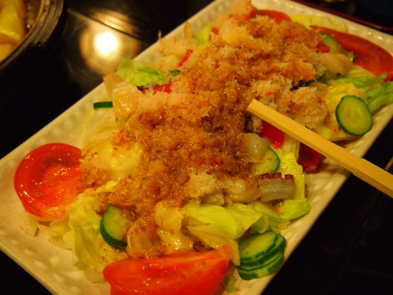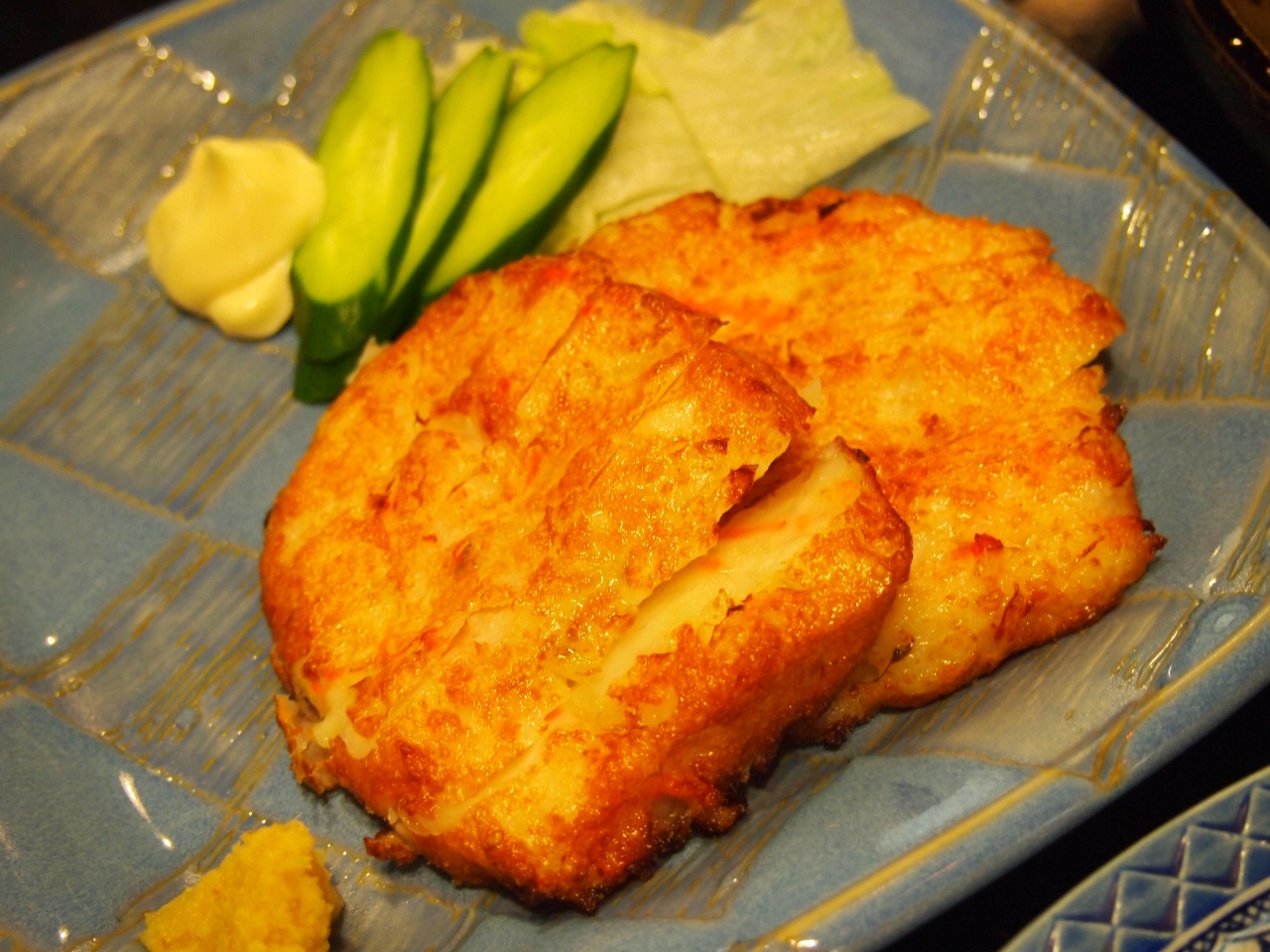 カニがたっぷり入ったサラダや、真狩焼き(ジャガイモのチーズ焼き)は、こちらの名物料理ですね。