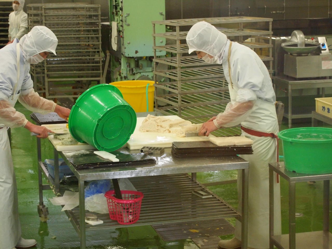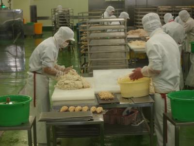 札幌市内のデパートや新千歳空港にもある「かま栄」ですが、こちらは工場での製造過程を見せて頂けます。
