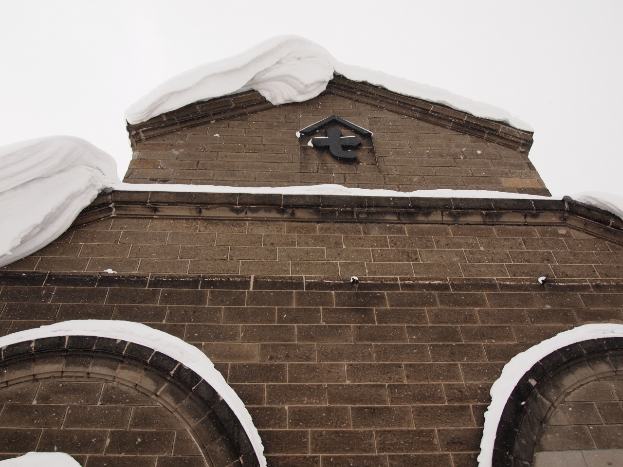 木骨木造2階建ての造りで、外壁に札幌軟石を使用し、越屋根と入口部分の二重アーチが特徴です。