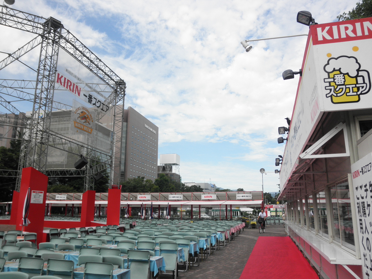 この時期、公園だけではなく、公園に面しているホテルもビアガーデンを行い、まさにビアガーデン天国ですね(笑)