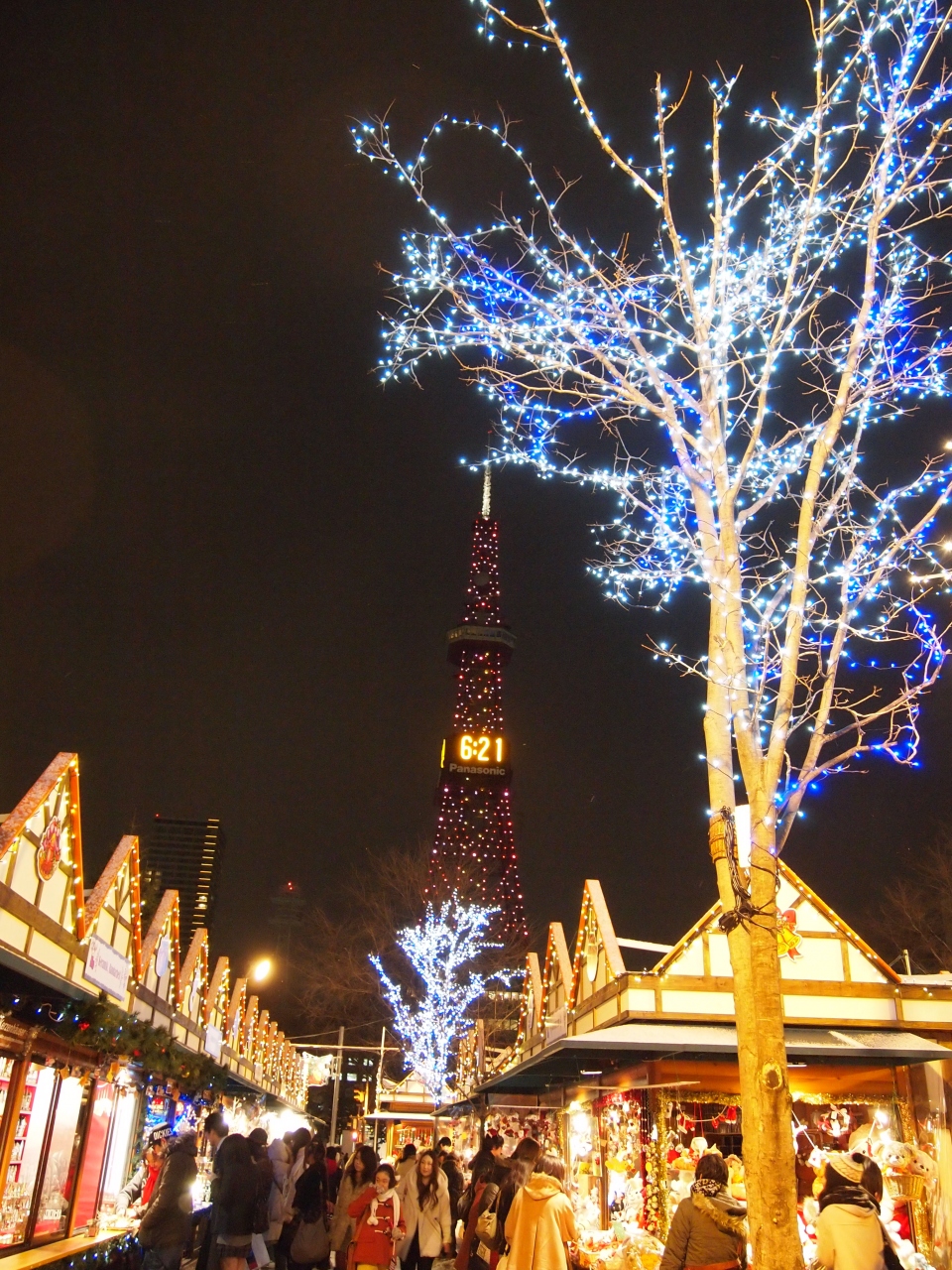 テレビ塔に近い大通公園1丁目、2丁目辺りで行われるので、ライトアップされたテレビ塔をバックに、可愛らしい雰囲気です。