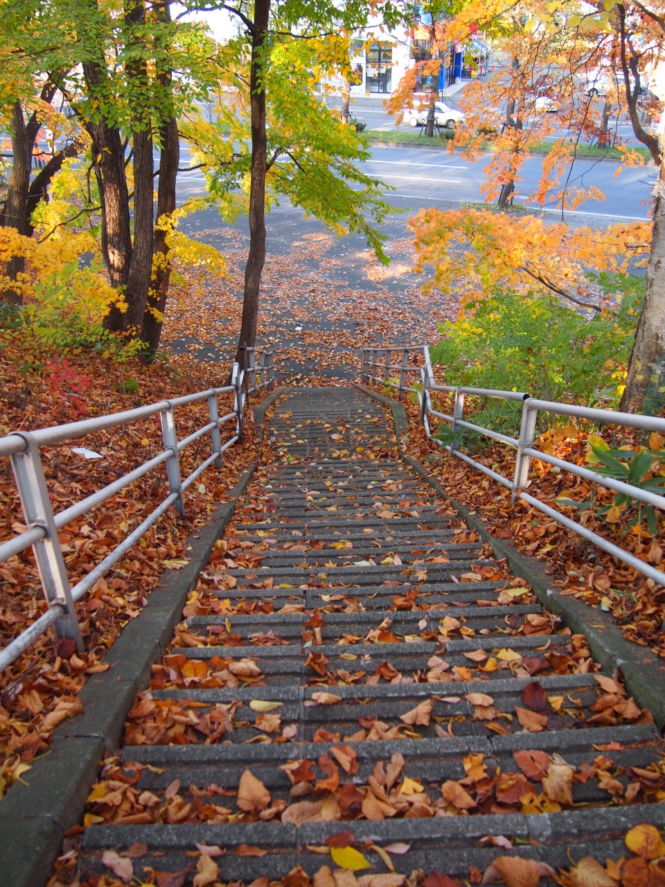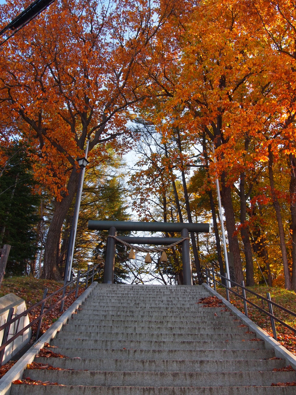 神社の石段を登ると、静かな空間がきれいに色づいていました。
