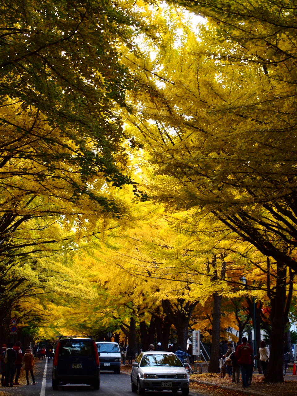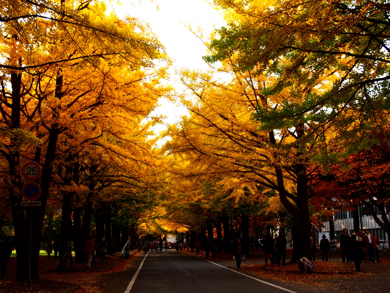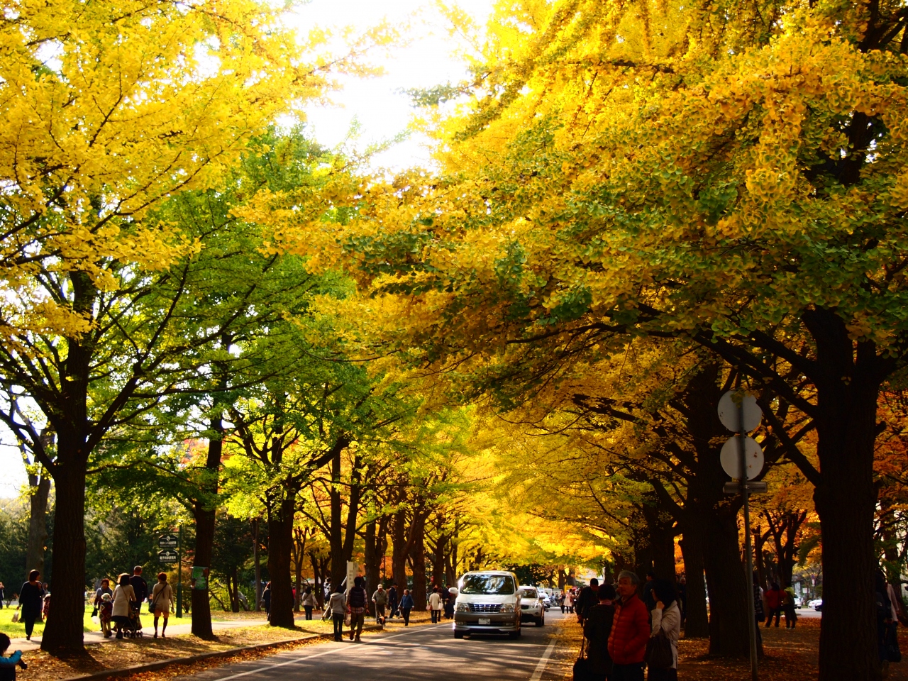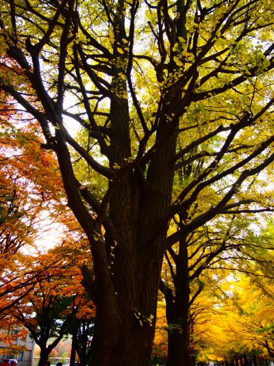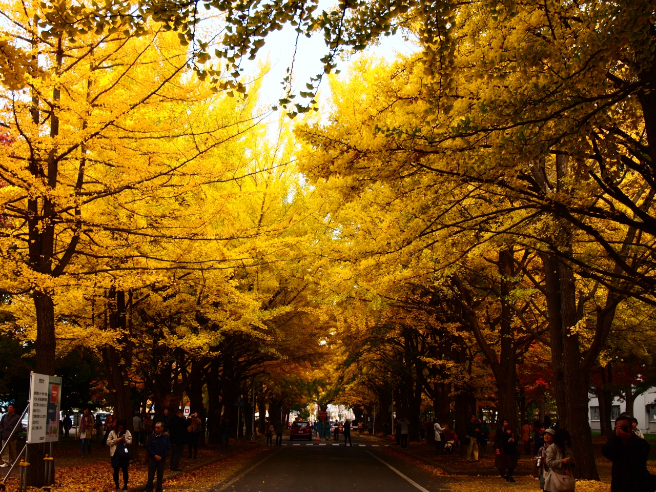 北大の北13条門周辺のいちょう並木は、秋のニュースになるほどです。