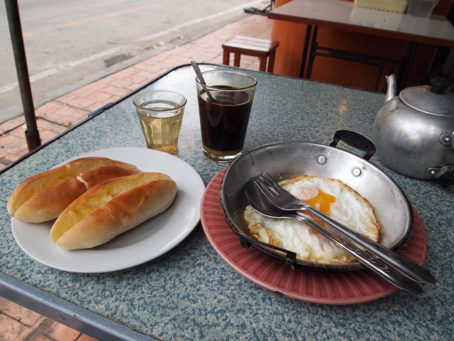 チェンマイ門から堀の内側に100mくらい入った左側に店名”カイガタ”がある。以前朝バイクにてふらふらしていて偶然発見したお店である。ちいさなお店だが、ここの売りはモーニングセット。一番安いセットがBセットで35B、小さいコッペパン2個にフライパンで焼いた目玉焼き2個、それにタイ風ホットコーヒー(コンデンスミルク入り)。パンは上に切り込み入れてあるのでそこに目玉焼き乗せて塩・コショウ・ナンプラーを少量かけて食べるのが私のお気に入り。セットAは50B、トッピングが少し乗ってくる。カイガタ自体はイサーン料理名らしい、それを店名にした。以前朝食でいった所がモーニングセットをうたっていたのだが、出てきたのはコーヒーと食パン2枚。あれ?と思い聞きなおしたがこれだけだった、これで90Bは高いだろう、たいした店じゃないのに。そこから比べたら35Bってチェンマイの中で最ももリーズナブルじゃないだろうか。店内にはその他メニューもあるのでいろいろお試しあれ。営業時間は6:00−15:00。午前中はタイ人やファランでも混んでいる時間帯もあり。