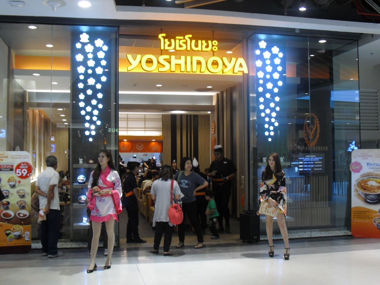 セントラルフェスティバル・チェンマイ2013年11月14日オープンです。チェンマイ初の吉野家というのでいって来ました。場所はアーケード(バスターミナル)先ハイウェイの交差点の所。満杯のお客で実際は食べれませんでしたが価格は持ち帰りで105Bとなっておりました。昔話になりますが20年ほど前バンコク・シーロムに吉野家があった時とは雲泥の差です。メニューもなかなか豊富ですね。建物内はこの他にもチェンマイ2店目となるユニクロほか、大戸屋・ちゃぶ屋とんこつらぁ麺・博多ラーメン・わが家・miyabiなどなど初出店があります。すでに行列のできる店もあれば出遅れてるところもありです。