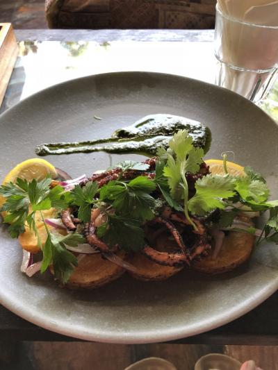 Grilled Octopus Saladタコのサラダ。下に敷いてある...