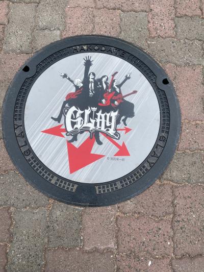 五稜郭タワーの前のマンホールは全員バージョン。よく見たら、尾田栄一郎、...