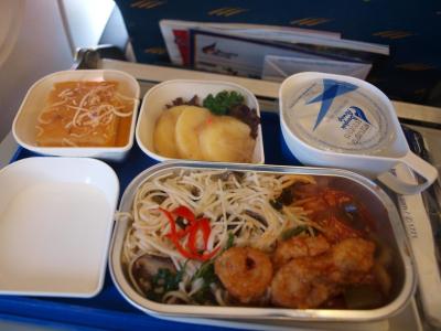 その間、食事は全て機内食で賄いますが、とにかく量が少なくてヒモジイ思いをしました。