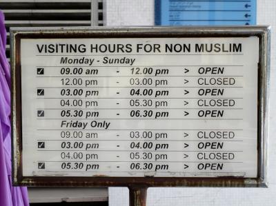 とても観光客フレンドリーなモスクです。スタッフの方は慣れた感じで観光客をさばいています。近代建築なので、華美な装飾はなくあっさりモダンな建物です。「モスクってどんな感じなんだろう~」と体験してみたい方にはお勧めできますが、イスラム建築や芸術の類を楽しみたい方は不満な内容です。