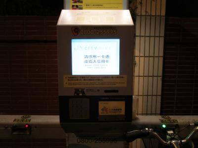 公共のレンタル自転車です。ステーション(租賃站)の密度も高く、60分以内なら無料なので、観光スポットごとに返却すれば一日無料で行動することができます。60分過ぎても90分まで10元なので激安です。自転車のメンテナンスは問題なし(鍵付き/ライトは暗くなると自動点灯)。観光地では台湾ファミリーも借りていました。
