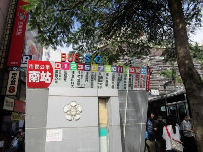 台南駅前のバス停は方向別に"北"と"南"に分かれています。駅舎を背にして右側が"北"、左が"南"です。発着する系統別ではなく方向別です。系統別の案内図と有人の案内所があります。