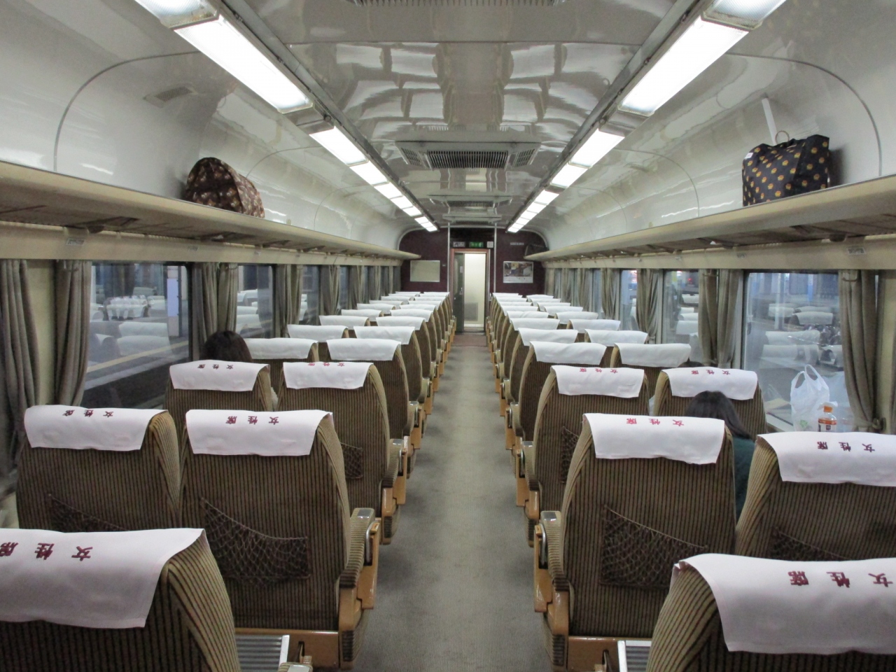 - 夜行ですから、ほとんどに時間、車窓は暗闇です。