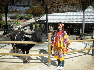 太鼓や踊りを見たり、水牛と一緒に写真をとったり。