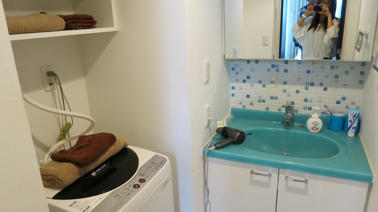 お部屋に洗濯機がついてとっても便利です。