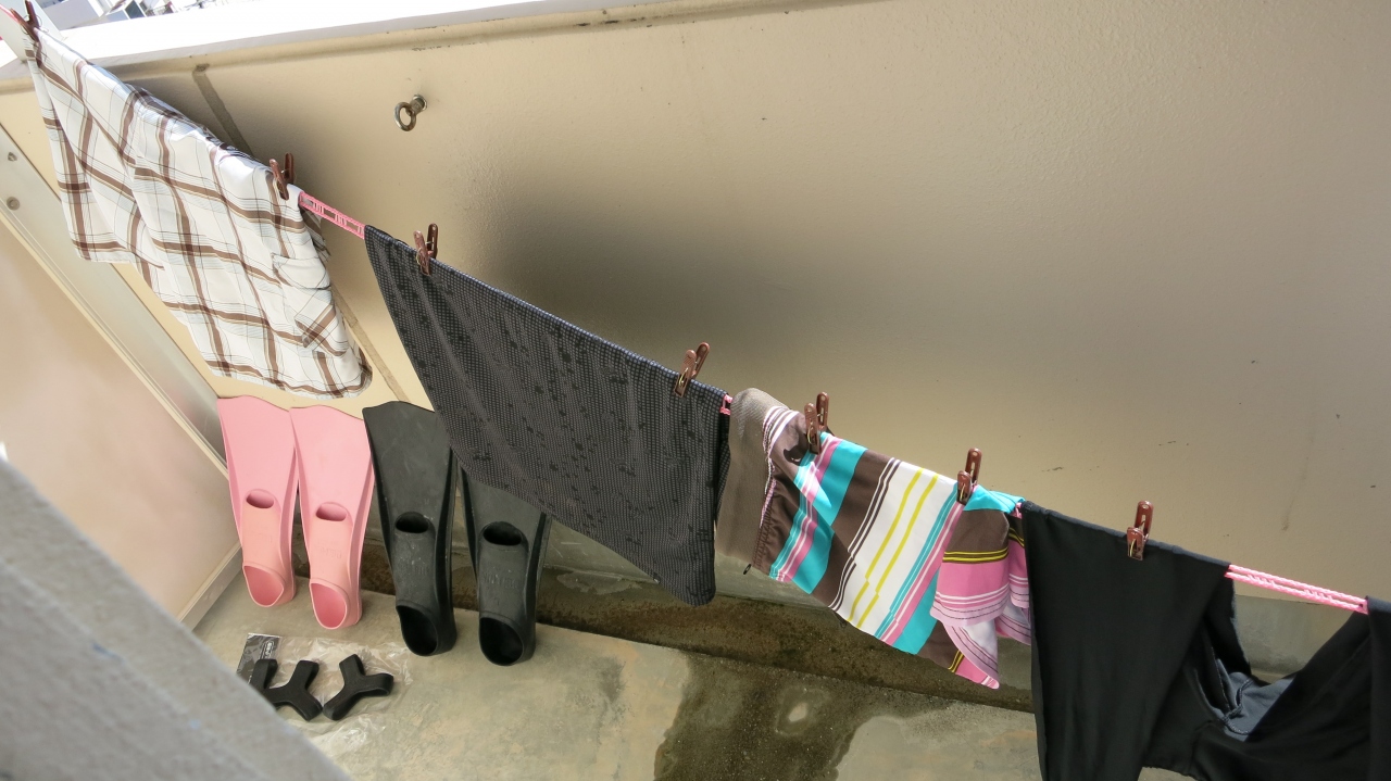 シュノーケルするのでお部屋でお洗濯できるし、お風呂もゆったり入れるし、