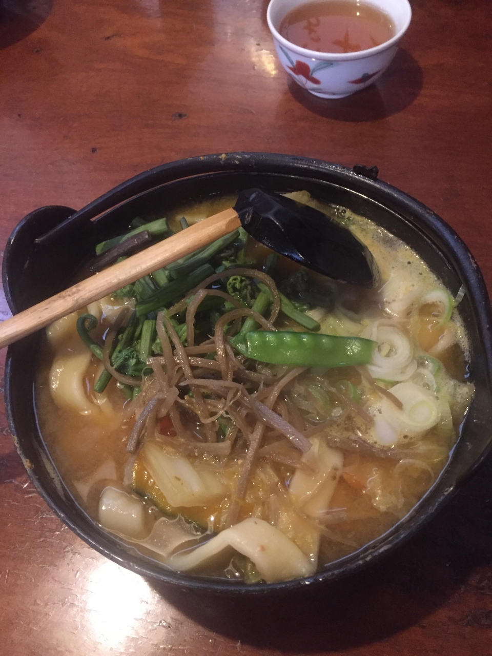 とにかく量が多くて食べきれないです。かぼちゃほうとうはお肉類ははいってないですが、かぼちゃをはじめ人参や大根など野菜たっぷり。