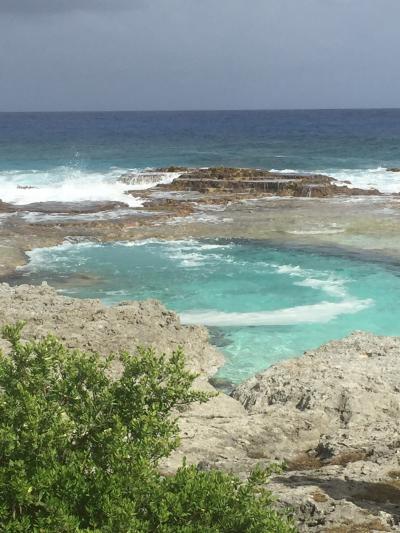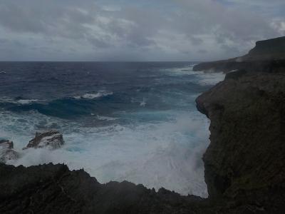 きれいなロタブルーの水と水しぶきの白、岩場の黒のコントラストがすばらしいです。ザッパーンという音も迫力満点。ロタに行った際はぜひ一度は行ってみてください。- 旅行時期