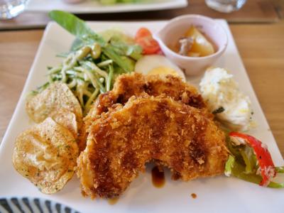 出てくるまでに少し時間がかかったけれど、ボリュームたっぷりで見た目にもカラフルなランチが到着♪お野菜は自家製なんだって!採れたて新鮮なお野菜もメインのミートローフ・お麩のカツもとっても美味しかった!とうもろこしのスープも優しい味でほっこりしました(*´∀`*)