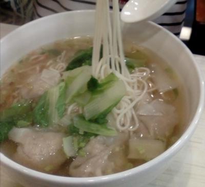 お店の方は、大忙しなのに、いろいろ勝手が分からない私達にとても親切にしてくれました。日本語表記のメニューはないけど、漢字でだいたい分かります。ホタテのワンタン麺とエビのワンタン麺を頼みましたが、値段が安いのに、たくさん海鮮が入ってました!そして、美味しい!