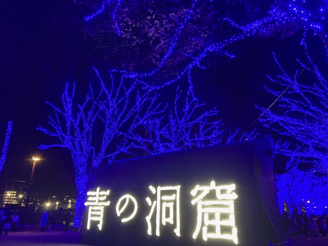 JR渋谷駅からも青いイルミが少しずつ続いていて